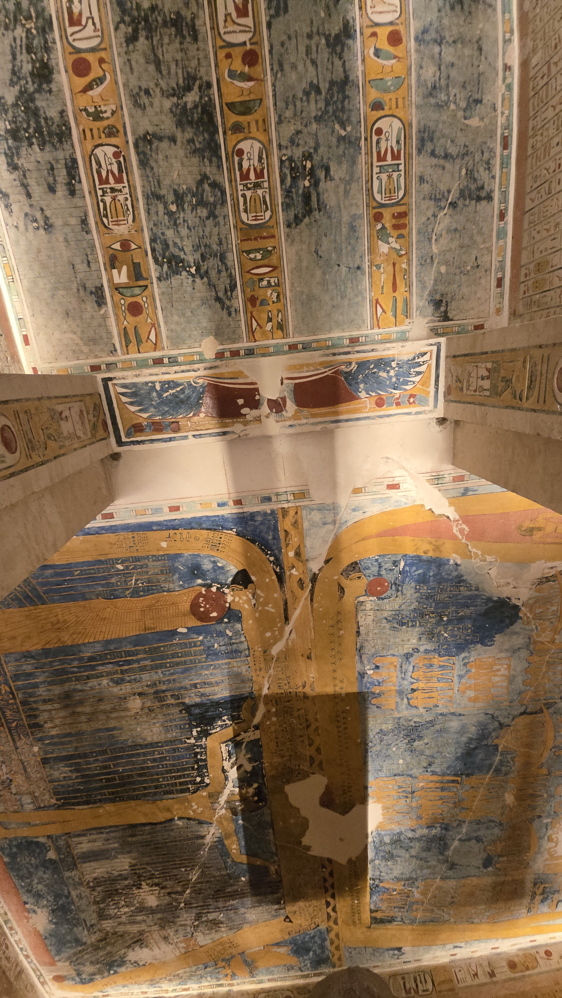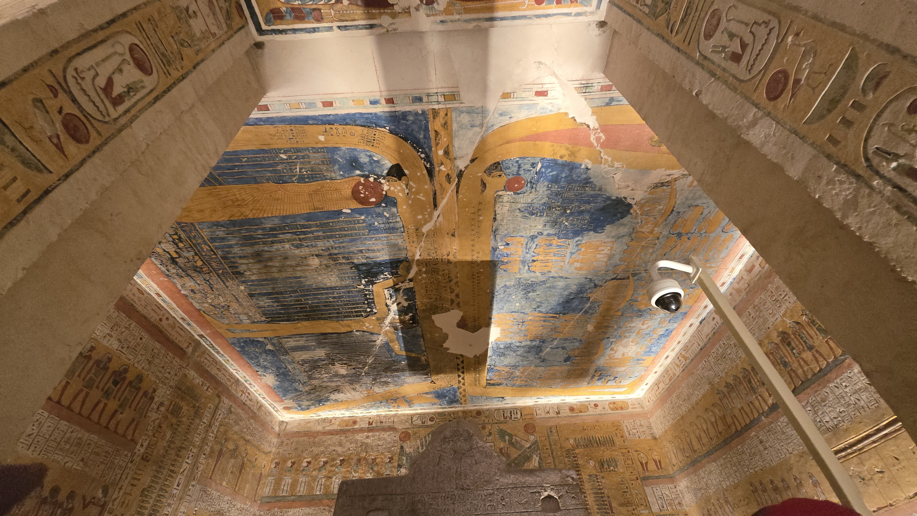 특히, 매장실(Burial Chamber) 천장에 그려진 거대한 황금빛 벽화는 고대 이집트인의 우주관을 압도적으로 보여 주는데,