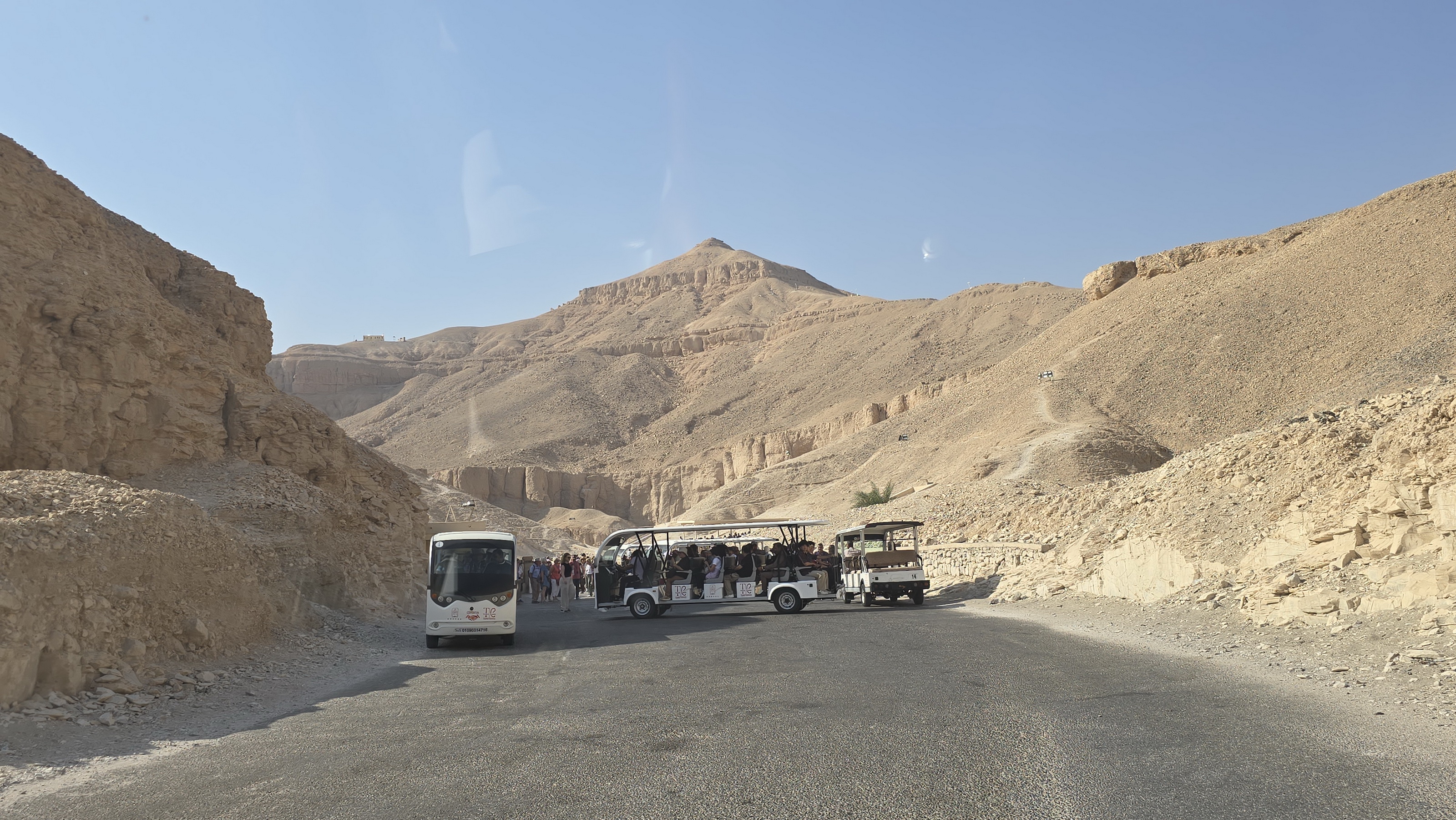왕가의 계곡 입구에서 무덤들이 있는 곳까지는 카트 형태의 차를 타고 간다.