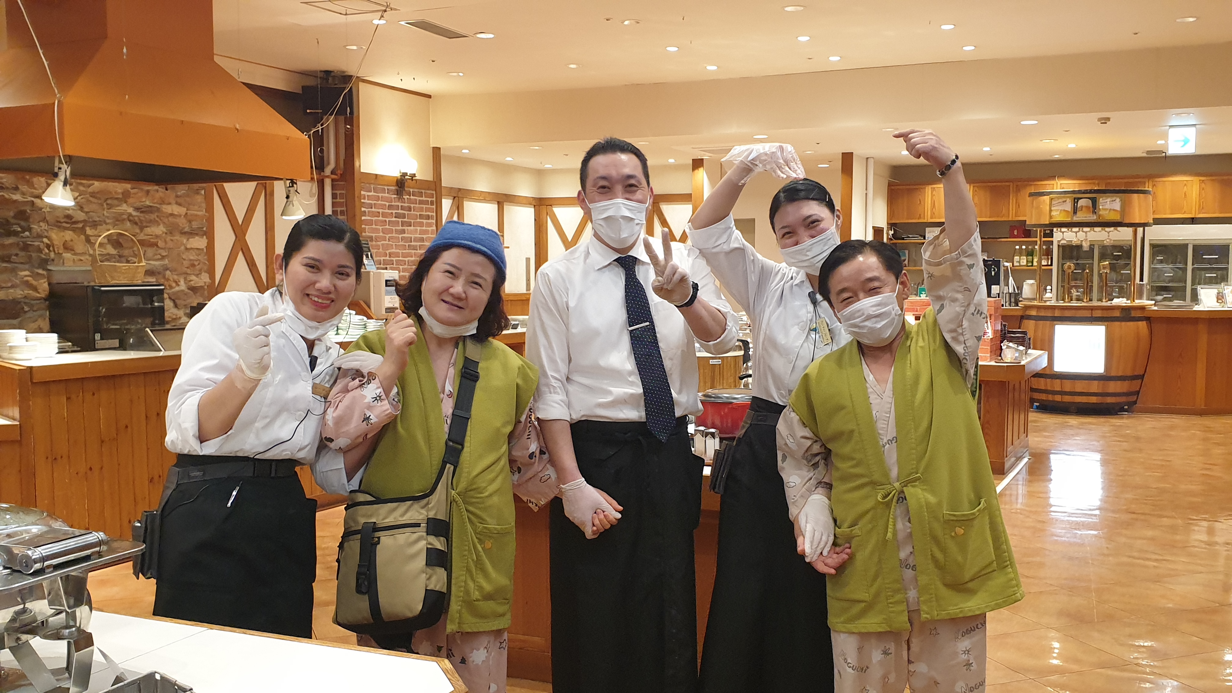 우리도 이만 퇴하고 올라갑시다 하고는 호텔 식당 직원들과 인증 샷 하나를 추가 하였다.