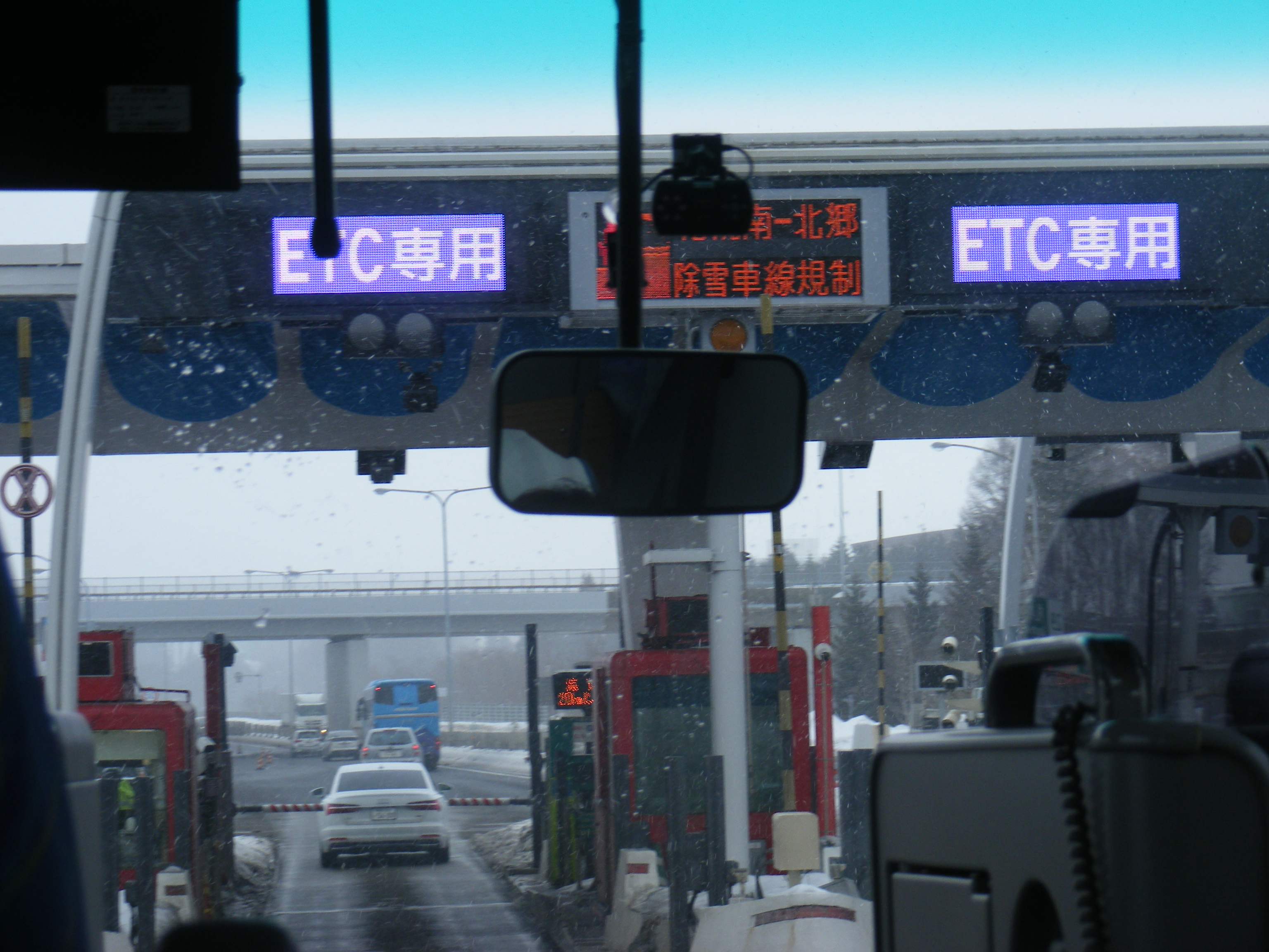 ▼ 눈을 맞으며 고속도로 톨게이트를 통과하는 모습이다.