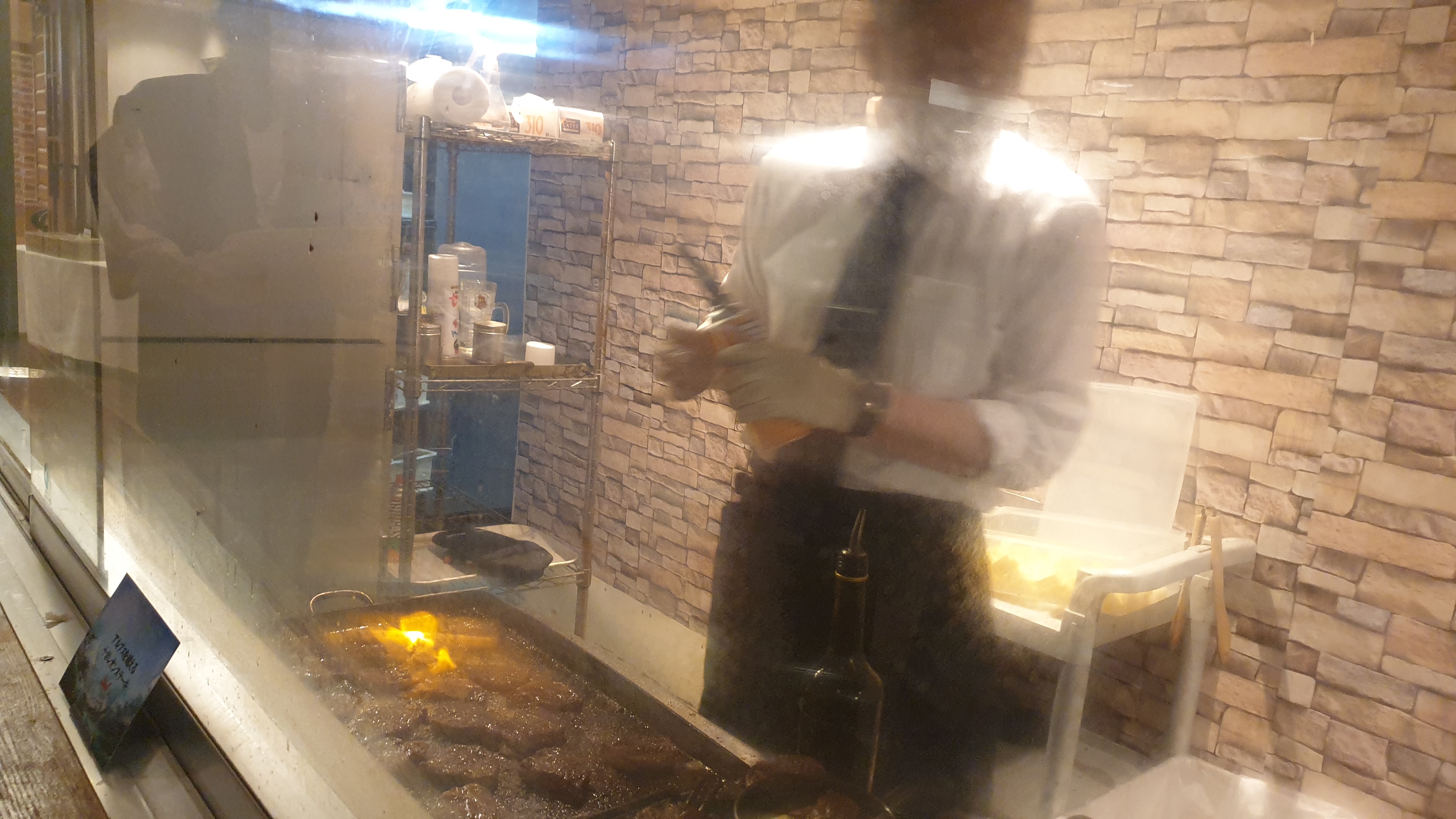 ▼ 잠시 식당 분위기를 정찰하는데 식당 입구에서 스테이크를 굽고 있는 주방장(??)이 보인다.