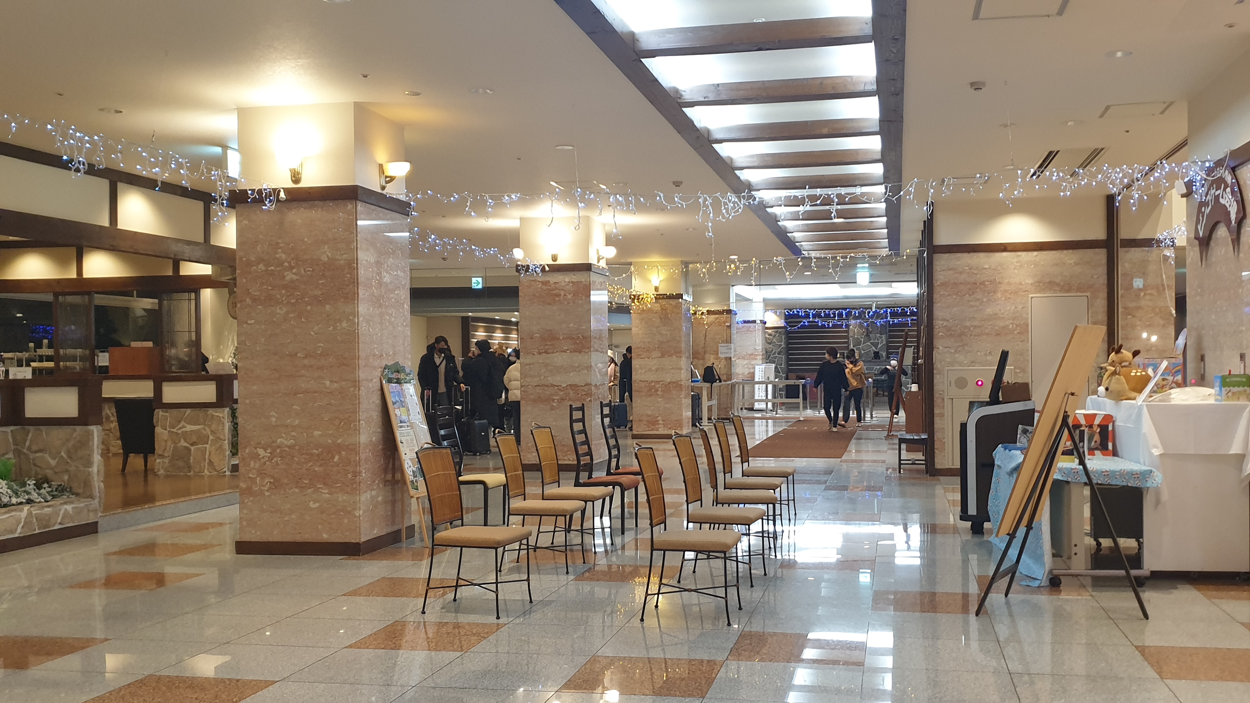 ▼ 리조트 호텔 내부로 입장을 하여 객실을 배정 받은 후 목욕 수건을 받아 들고 각자의 객실로 이동을 하게 된다.